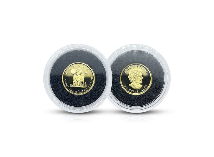 - Add to your cart this 1/25 oz Gold Royal Canadian Mint Coin 9999 -- The Wolf and enhance your investor or collector ---s portfolio today!