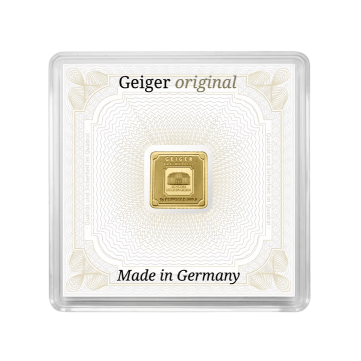 The 1 g Gold Geiger Original Bar is a premium investment piece, known for its quality and advanced security features. Produced by Geiger Edelmetalle, one of Germany's oldest and most prestigious mints, this bar offers a convenient way to invest in gold with a smaller weight.