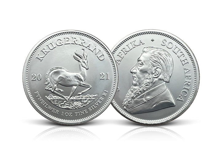 Reverse: Shows the South African Mint ™s iconic Springbok Antelope with the mintage year on each side, and the words œKRUGERRAND FYNSILWER 1 oz FINE SILVER  Obverse: Bust of Paul Kruger and the words œSUID-AFRIKA · SOUTH AFRICA  The coins are sold individually or in mint sealed plastic tubes of 25 coins. Add this 1 oz 2021 Silver South African Krugerrand Coin to your cart today!Order in the next [totalHours] hours %M minutes with complete payment , we will ship it between and