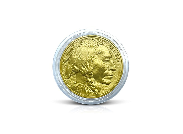 The American Buffalo, also known as a gold buffalo, is a 24-karat bullion coin first offered for sale by the United States Mint on June 22, 2006. The coin follows the Indian Head nickel's design and has gained its nickname from the American Bison on the reverse side of the design. This was the first time ever that the United States Government has minted pure (.9999) 24-karat gold coins for the public.