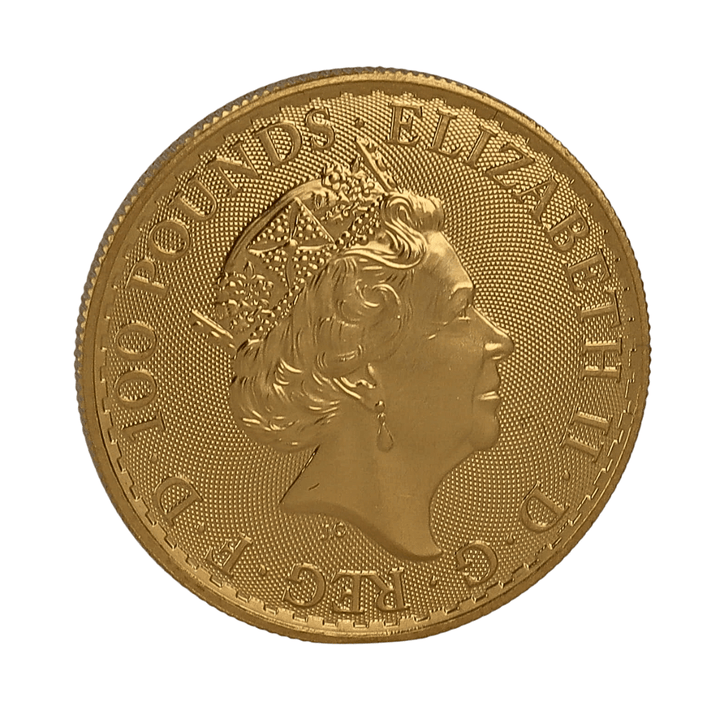 - Obverse: Features the fifth and final portrait of Queen Elizabeth II, designed by Jody Clark. This portrait is accompanied by the inscriptions œELIZABETH II,  œD·G·REG·F·D,  and the denomination of 100 POUNDS.