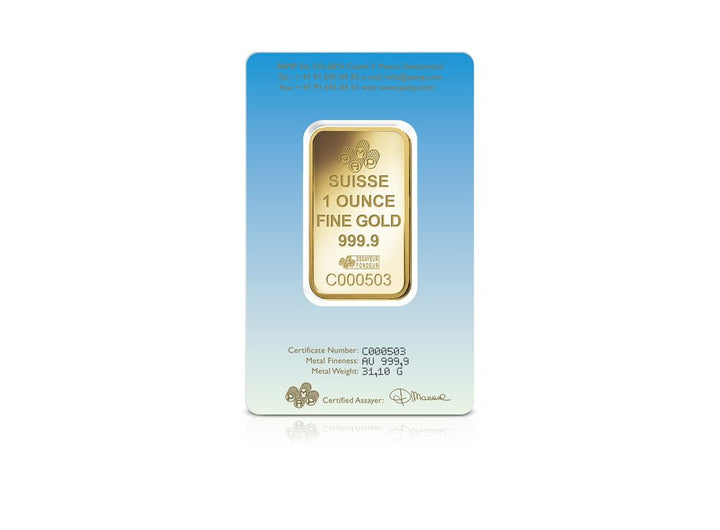 PAMP Suisse is a leading bullion brand and one of the world's most trusted and accredited refiners and fabricators of precious metals. Each bar contains 1 oz of 99.99% pure investment grade gold bullion.