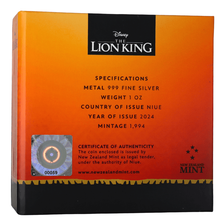 * Unique design, engraving, or symbolic meaning: The coin features a vivid, colored graphic of Scar in a menacing pose, with his name engraved and frosted below. The limited mintage of only 1,994 pieces worldwide honors the film's original release year, adding to its exclusivity. The obverse displays the effigy of His Majesty King Charles III, confirming its legal tender status.