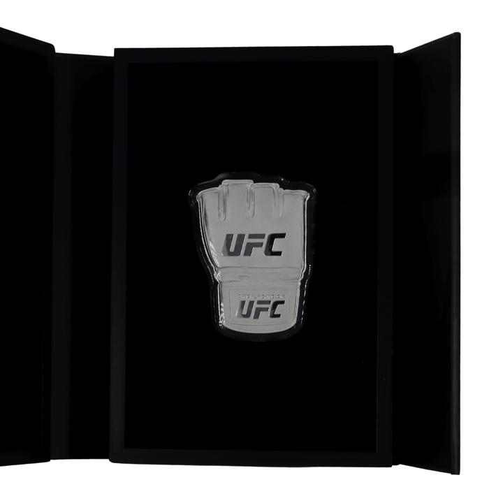 1 oz Silver 2024 UFC Glove Shaped Coin, a stunning addition to any collection. This investment-grade bullion coin, produced by the Niue Agoro, is a must-have for collectors and precious metal enthusiasts. Buy this unique silver coin today and diversify your portfolio.