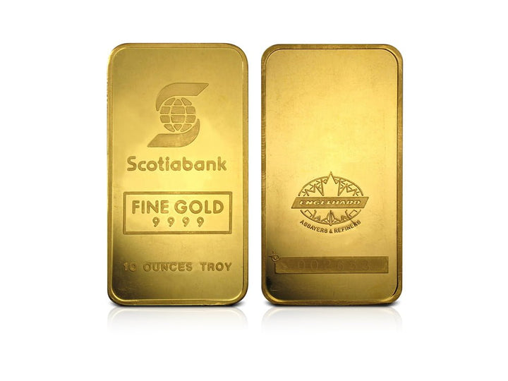 10 oz Gold Scotiabank Bar 99.99% (Engelhard - Maple Design Reverse)