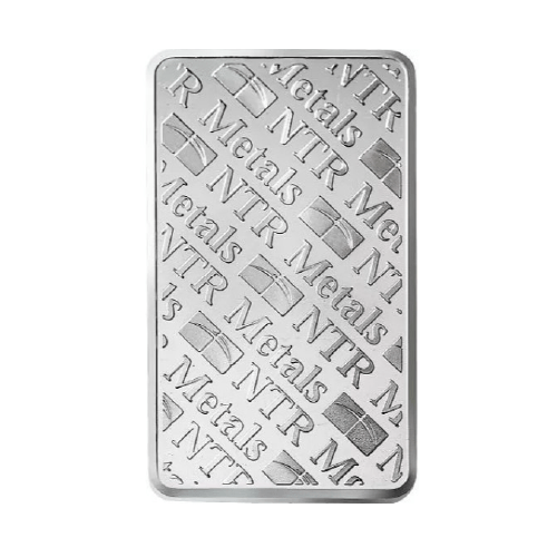 The Texas-based NTR bars are minted with 0.999 fine silver. On the top of the observe side of the bar, you will find the "NTR" brand logo with a hammer, the purity, and the weight in troy ounces. You will find the logo engraved diagonally across the back on the reverse side.