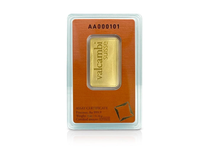 The Valcambi bars are sealed and stamped with the Valcambi square logo, the purity, and the unique serial number. Adding this 1 oz gold bar to your portfolio is an easy way to start your gold investment journey. Valcambi Suisse is one of the oldest refiners, and they tend to give their bars elegance with a touch of modernization. Each bar is offered in brand new condition at Express Gold Refining.-  --- -  -  Add this 1-ounce pure gold bar to your cart today.-  -  --- -  -  -- -  -  *Photos may differ from the products available.