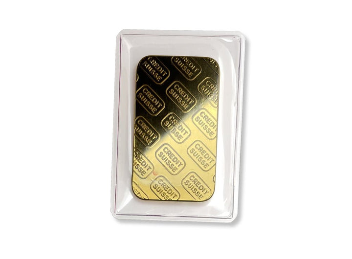 Universally recognized refiner Credit Suisse produces this 20 grams gold bar; each ingot comes stamped with a unique serial number and sealed in plastic. The bar is always made from 99.99% fine gold bullion.