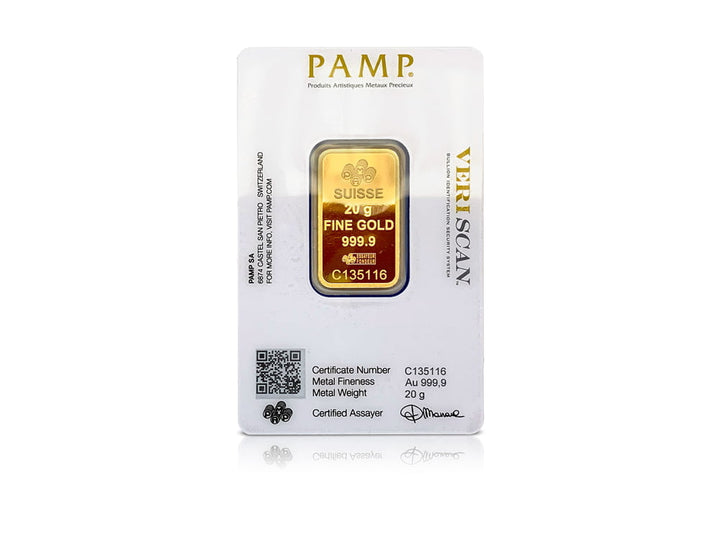 -  Add this 20 g Gold Pamp Suisse Bar 99.99% to your investment portfolio today!