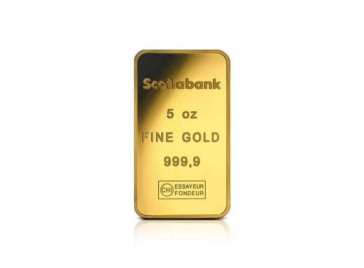 - Add this 5 oz Gold Scotiabank Bar 99.99% to your investment portfolio today!